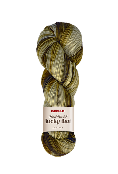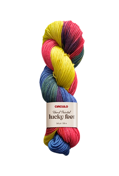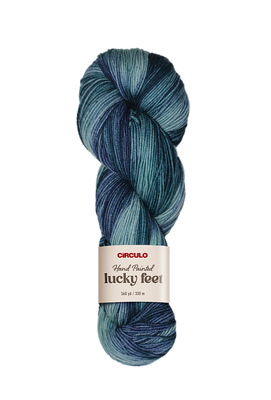 Lucky Feet - Circulo Merino Wool and Polyamide. Handmade, with a unique composition of 75% Superwash Merino Wool and 25% Polyamide, The socks are lightweight, soft, and comfortable. They are also highly durable and can be worn both indoors for coziness and with winter footwear. Another equally amazing detail is in their dyeing process. Lucky Feet is hand-painted, making each pair of socks unique. Each skein was developed to produce exactly one pair. It's incredible how we've thought of everything to make you feel super exclusive, isn't it?
